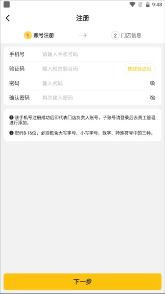 3、接着点击下一步,填写好门店信息后就可以进行登录;