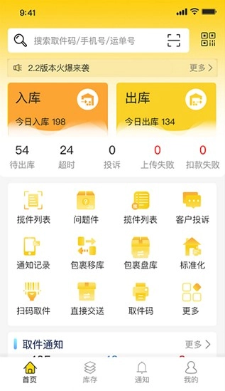 韵达超市致力于为用户提供更加便利的包裹查询服务,软件将实时可以查看物流状况,为用户提供更加舒适的包裹管理,轻松对顾客的包裹进行入库,一键扫描完成入库,软件中更有超多功能,帮助用户轻松统计店铺运营状况,获得更多帮助。
