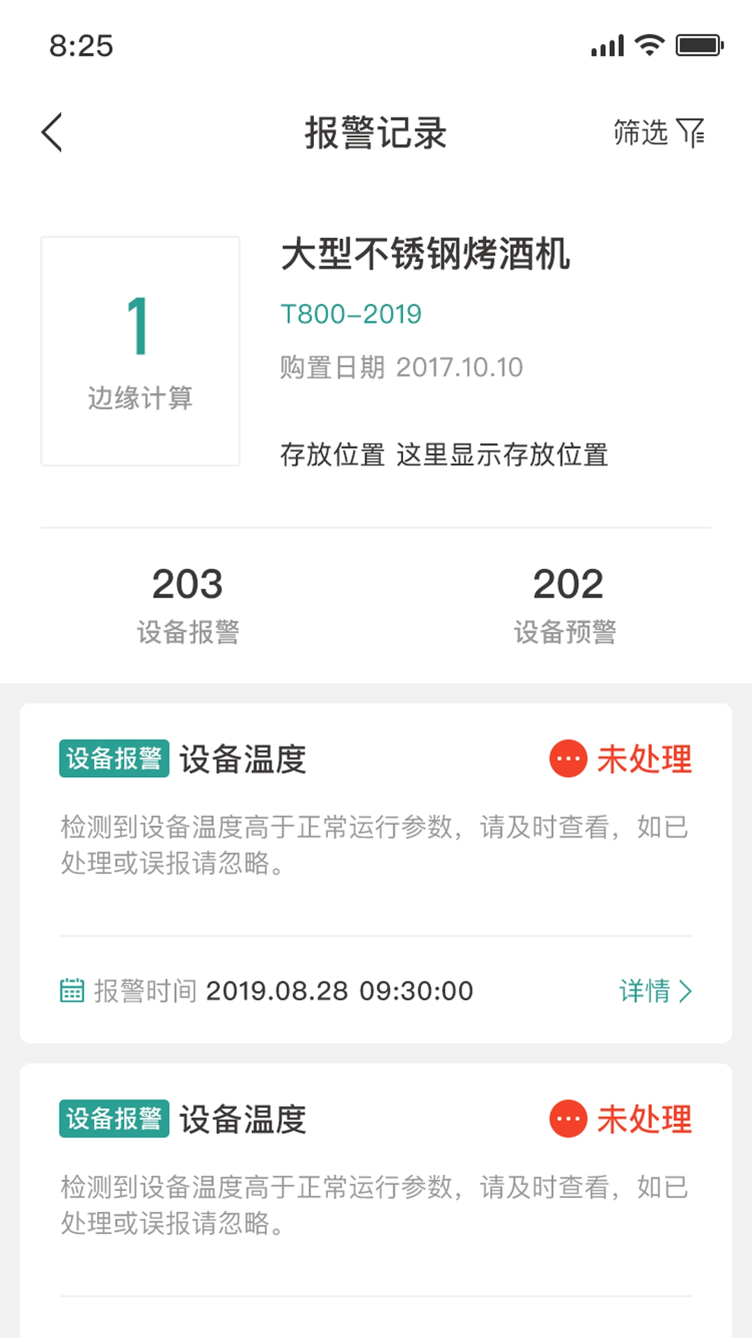 详情设备数据,可在线了解设备数量和问题;