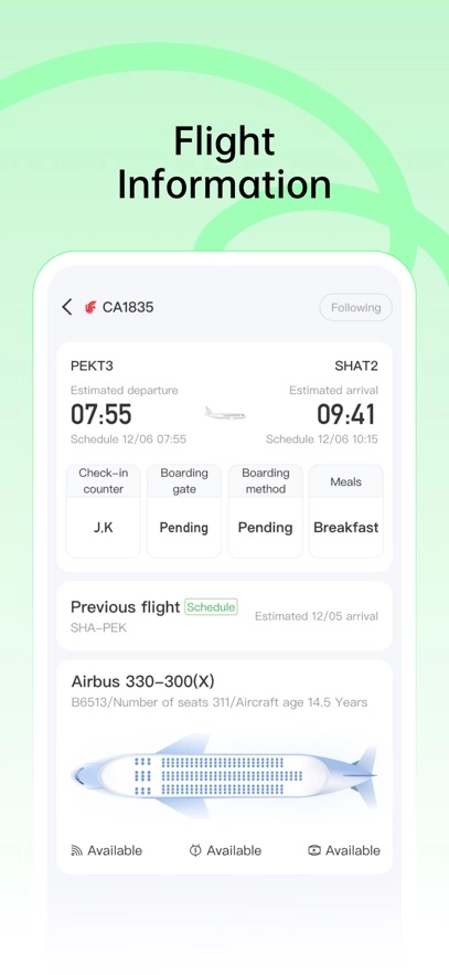 4、通过便捷的提醒,告知您航班时间安排的变动,包括航班状态、取消航班信息、新的出发及到达时间等!