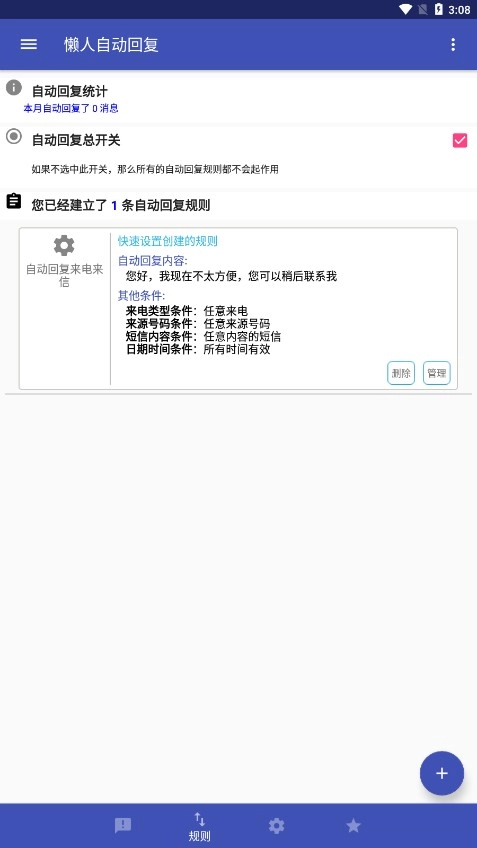 软件功能实用且占用内存小,可以自定义回复的内容,时间以及对象等,非常方便