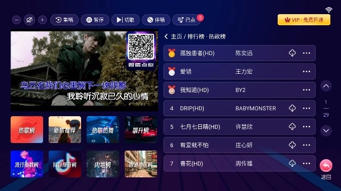 4.KTV模式升级,全屏MV大字歌词唱歌更爽。