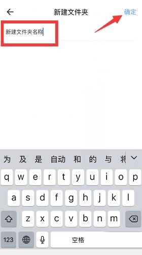 4、输入文件夹名称,点击右上角“确定”。
