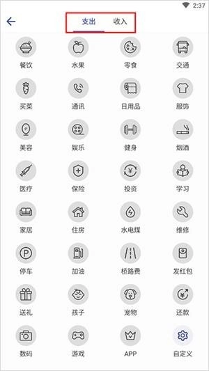 2、这里可以选择支出或者收入。