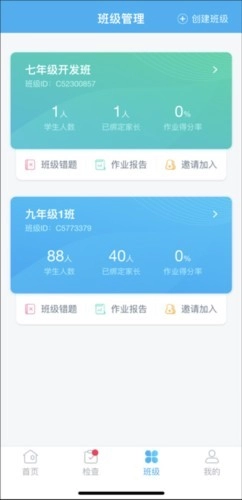 1. 开启软件,在首页底部菜单栏里点击“作业”,进而进入“检查作业”。