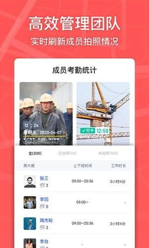 拍照自动同步到团队,管理者可在线管理工作团队;