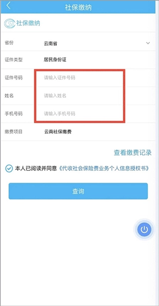 接下来会跳转至新的操作页面,需要在此填写个人账户信息。完成信息填写后,你可以选择点击“查看缴费记录”按钮先进行相关信息的查阅;若无需查阅,则可直接执行缴费步骤。