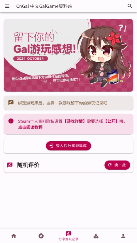 打开分享游玩记录功能,分享个人的游玩记录,并对部分游戏进行评价。