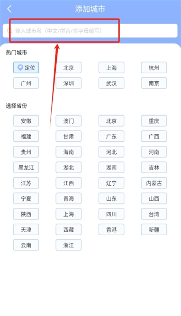 当弹出菜单出现后,找到并点击用于新增关注地点的功能选项,随后即可输入你希望添加的城市名称。