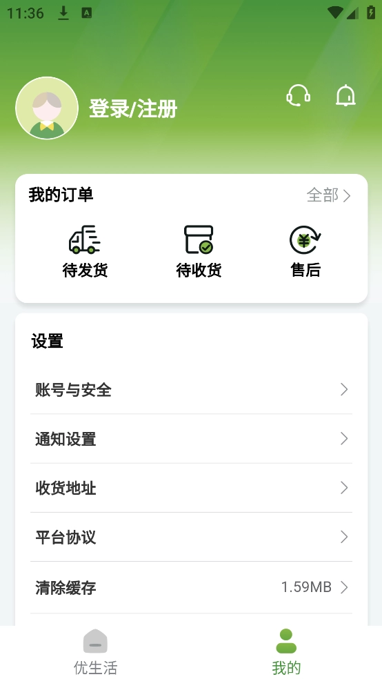 打开主页面能浏览到多样的商品,点击底部的“我的”按钮就能进入个人中心页面。