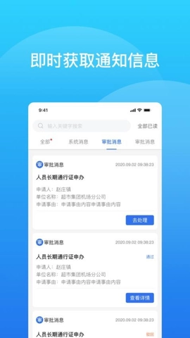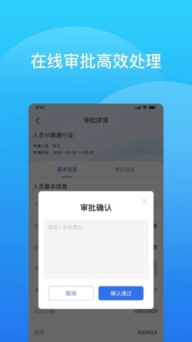 软件具备实时审批功能,相关审核人员能够在线查看申请事项,录入审核意见并完成确认操作。