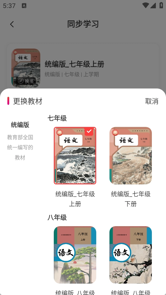 选择自己想要更换的教材即可