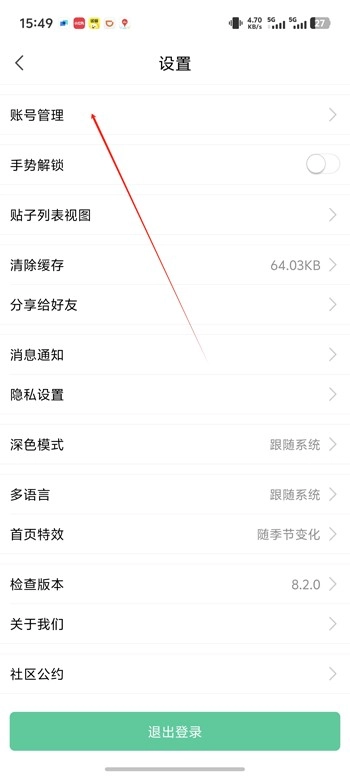 首先在设置页面点击账号管理。