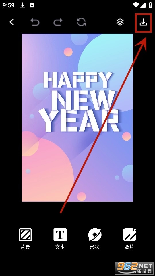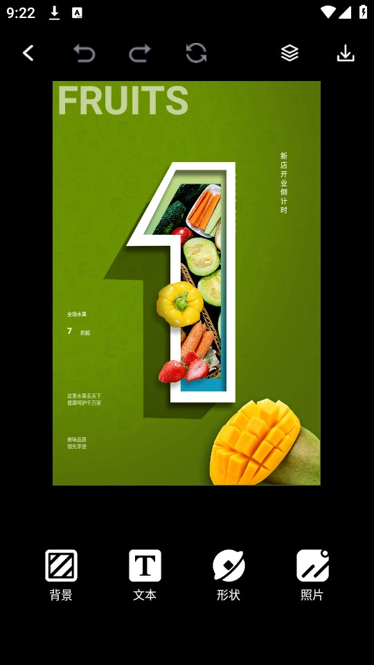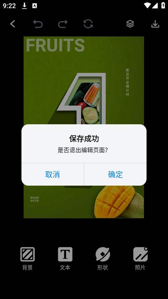 部分页面不存在保存按钮,例如工具界面里的海报设计功能,当打开该功能并完成相关设置后,点击右上角的按钮就会直接将内容导出至手机相册。
