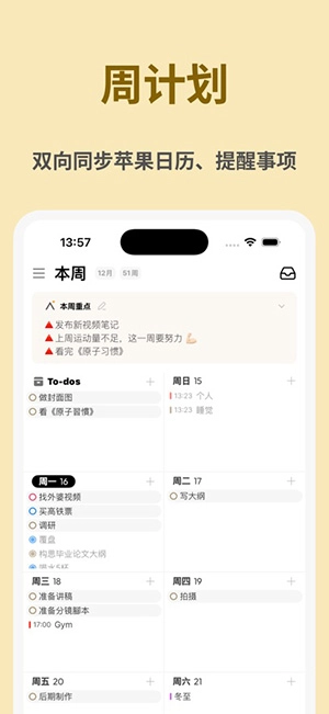 用户可以在对应的功能区域设置每日需完成的任务,这样能切实提高工作效率,保证重要事项得到妥善处理。 2. 该软件设有随手记录功能,便于用户随时记下生活里突然涌现的小灵感、关键信息和临时发生的事件。