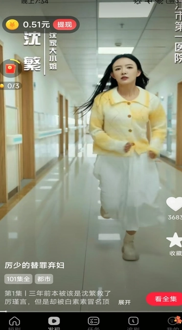 切换到“发现”板块,通过上下滑动操作即可切换对应的短剧。