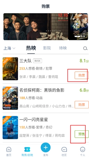 已经在电影院上映的电影会显示可购票状态,尚未上映的电影则属于预售范畴。