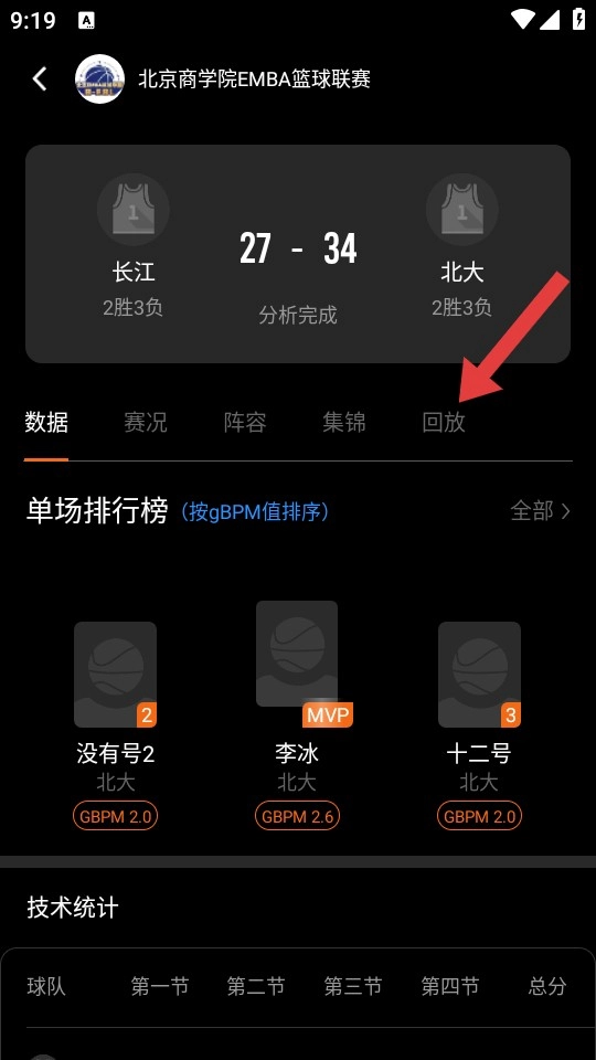 在回放界面,能挑选对应节次的视频,点击播放来查看赛事回放。