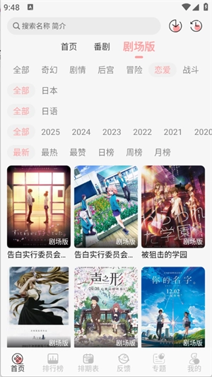 “专题”页面,将动漫按照题材类型进行归纳。