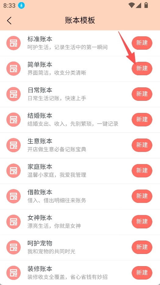 选择合适的账本模板,如简单账本。