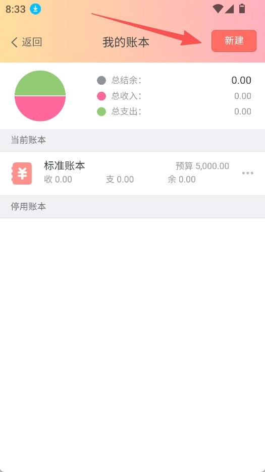 打开《随心记账》应用,进入“我的账本”页面,点击“新建”按钮。