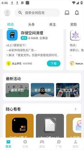 首页实时推荐热门应用,支持无限滑动加载,持续发现新鲜内容。
