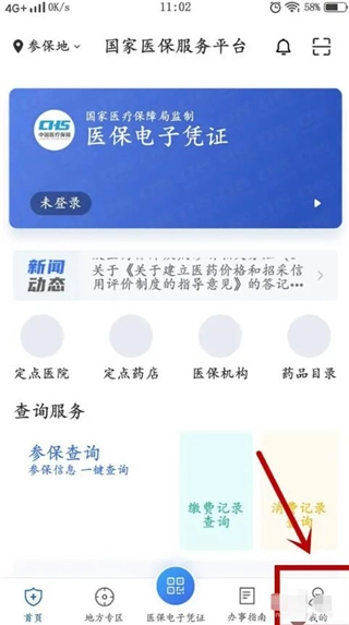 进入国家医保服务平台首页后,点击页面右下角的【我的】按钮。