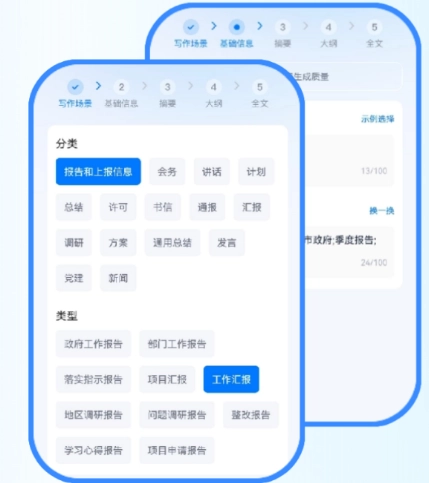 写作场景选择写作分类,完成后点下一步