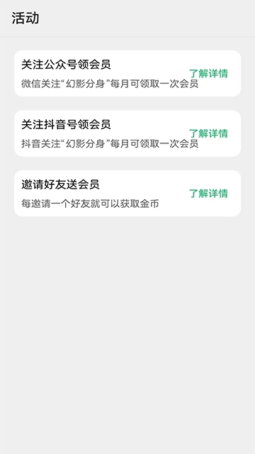 最后回到我的页面,通过绑定抖音账号、开通会员服务、使用卡密兑换这几种方式,就能获取VIP会员资格,从而解锁更多玩法权限。