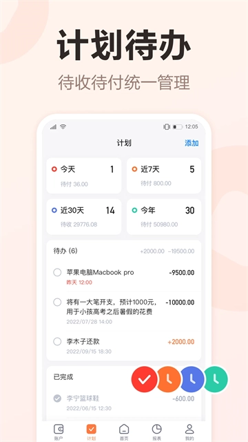 计划待办:管理覆盖多种资金待办,提供可靠提醒。