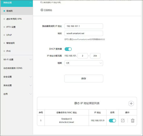 配置最简单的办法是让路由器采用桥接模式,不过这种方式会对原有网络功能造成比较大的影响。这里我们保留光猫拨号的原始连接方式,借助两次端口转发来达成连通。首先,为确保路由器的LAN地址保持稳定,能够依据路由器所使用的MAC地址来设置静态IP地址。