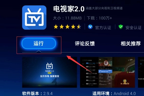 搜索结果出来后,找到电视家这个应用。点击运行,就能观看高道清的电视频道了。