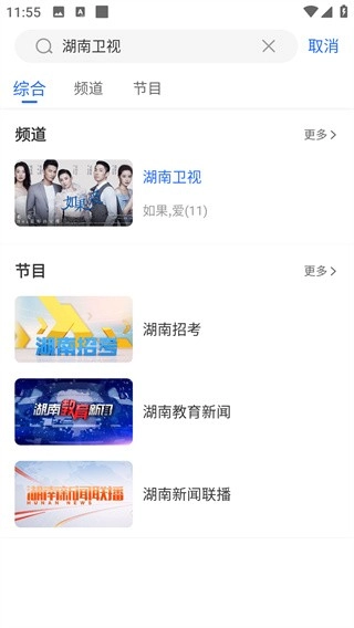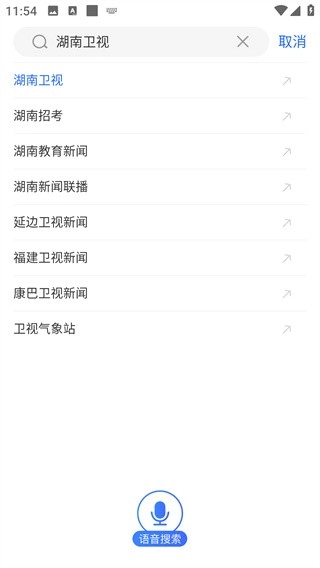 例如我们查找湖南卫视频道,点击顶部搜索框,输入“湖南卫视”,然后选择第一个搜索结果。
