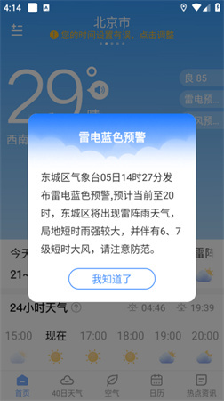 高温、寒潮、暴雨、台风、雾霾等各类恶劣天气的预警信息会被及时推送,以保障用户的安全。
