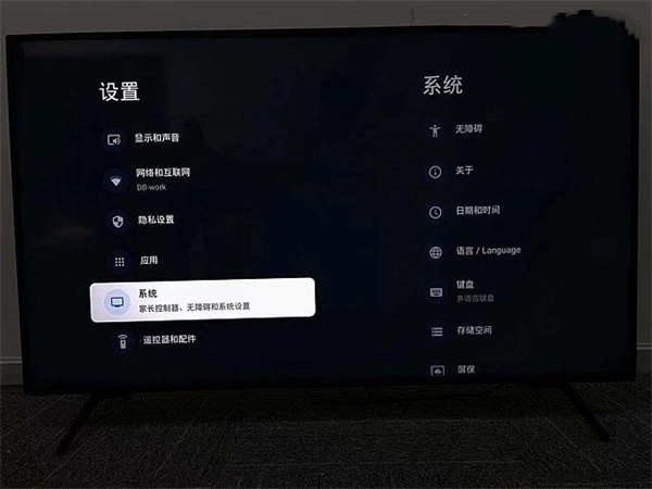 按照下图所示的步骤操作:先进入电视的设置界面,接着找到“系统”选项并点击进入。