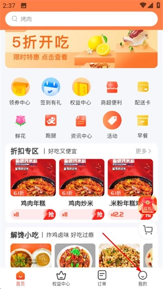 在Bijirim外卖的首页,点击底部导航栏中的“我的”选项,即可进入个人中心页面。