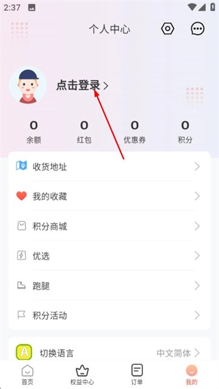 在个人中心页面,点击登录选项,即可进入登录页面。