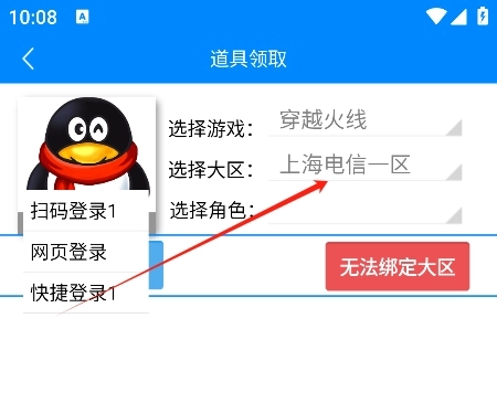 登陆好之后点绑定游戏大区及角色;