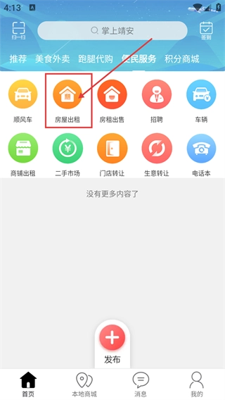 在便民服务板块里,找到并点击【房屋出租】选项,就能进入房屋出租信息列表页面。