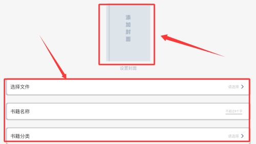 首先点击“添加封面”按钮,接着选择对应的文件,并填写书籍名称和选择书籍分类。
