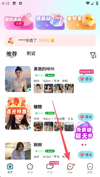 进入主界面后,你可以在【推荐】列表里浏览其他用户的卡片,还能借助底部的功能栏来切换不同的互动模块。