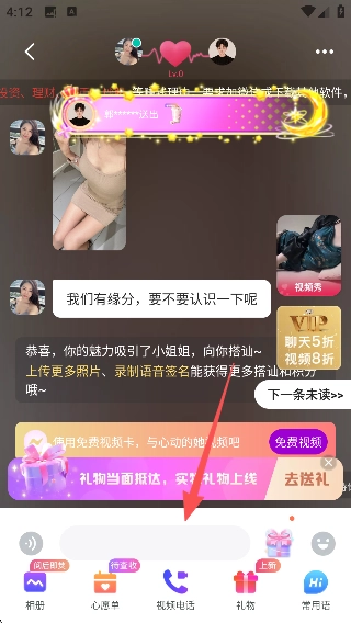 进入对话界面后,你可以查看对方发送的消息并进行回复,另外还能借助底部的【打招呼】【视频电话】等功能来开展互动。