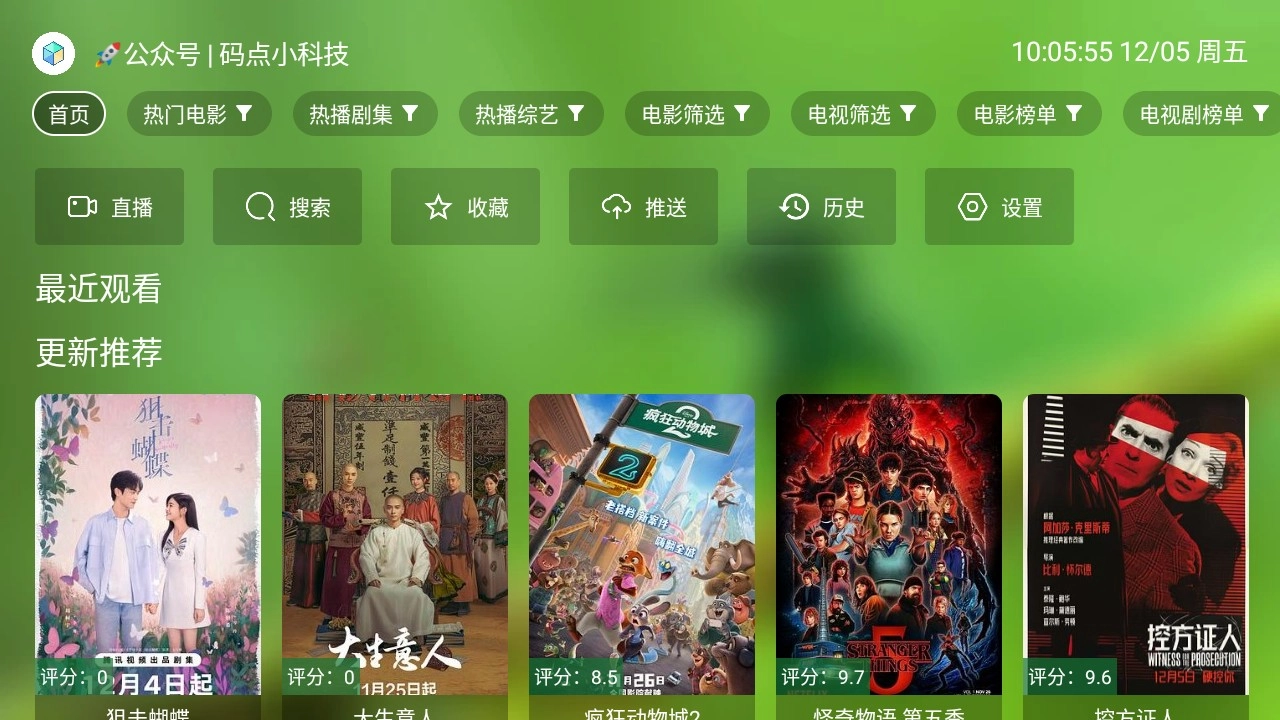 打开爆米花影视TV,进入首页浏览最新影视推荐