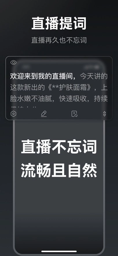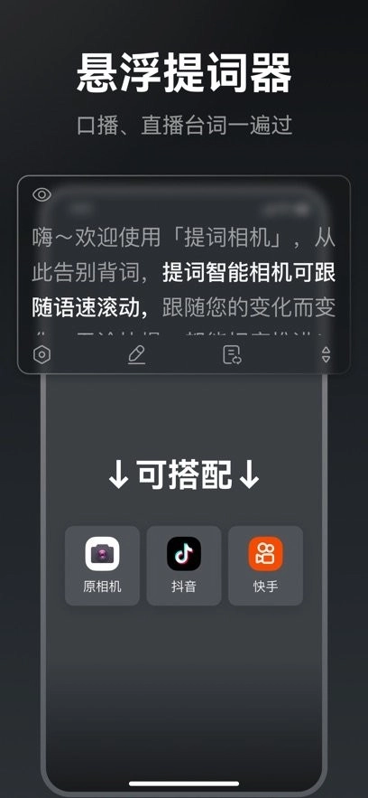 【悬浮提词器】能适配多种直播与拍摄类软件,同时拥有智能AI提词的功能,可实现台词随语速同步滚动。用户无需再用多部手机辅助提词,录制效率也能得到提升。