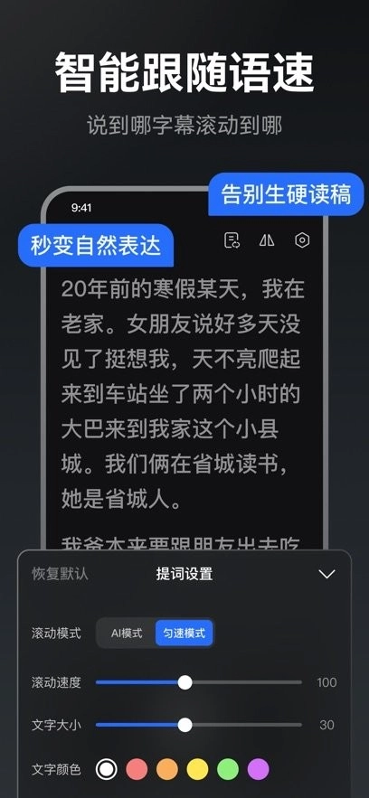 支持多种提词方式,并且能够依据自身需求来调整台词的播放速度。