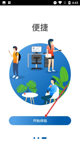 同意后进入“便捷”主题引导页面,该页面会展示各类功能场景,点击底部的【开始体验】按钮,即可进入后续的登录流程。