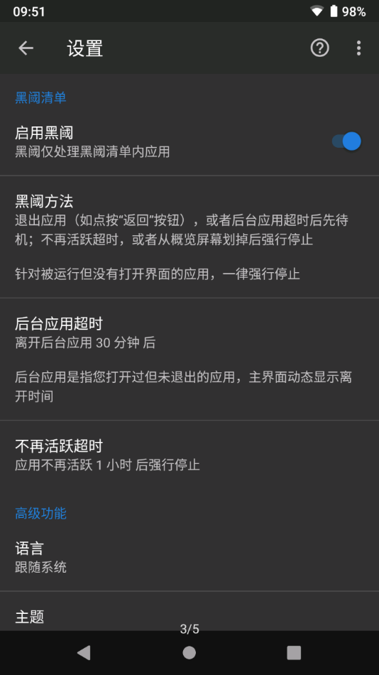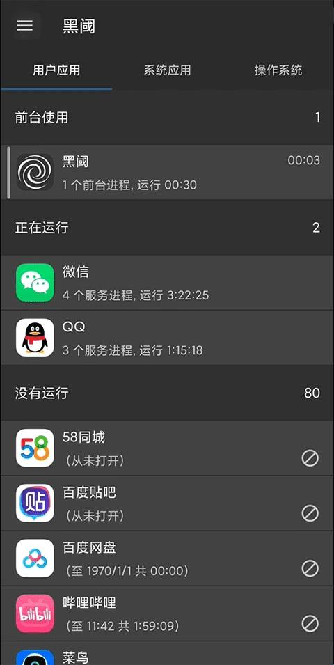 无论在什么情况下应用被启动,只要其界面没有处于打开状态,黑域最新版本都会强制终止该应用的运行。