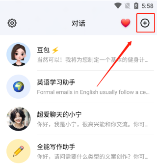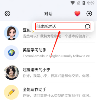 在新对话页面中点击右上方的三个点以打开更多选项。