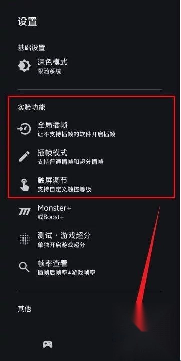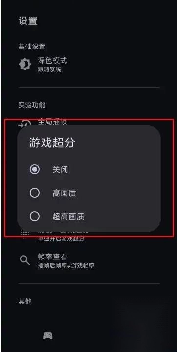 进入设置菜单后,找到并选择插帧模式,可在“超分插帧”和“普通插帧”这两个选项中进行选择。