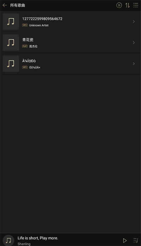 2、扫描完成后的音乐资源会自动添加到所有歌曲列表中,这样我们就能直接点击对应的歌曲进行播放了。